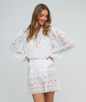 This white lace kaftan is a dream for anyone with an hourglass figure. The cinched waist emphasizes your narrow midsection, highlighting the balance between your shoulders and hips—essentially celebrating your natural curves. The wide sleeves add a touch of elegance, making it both a practical and stylish choice for beach outings.