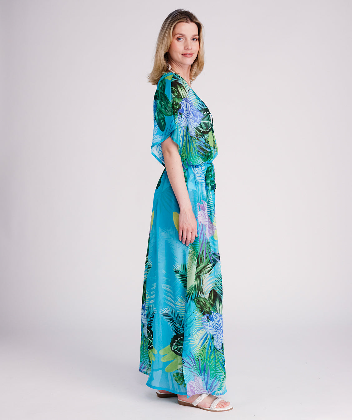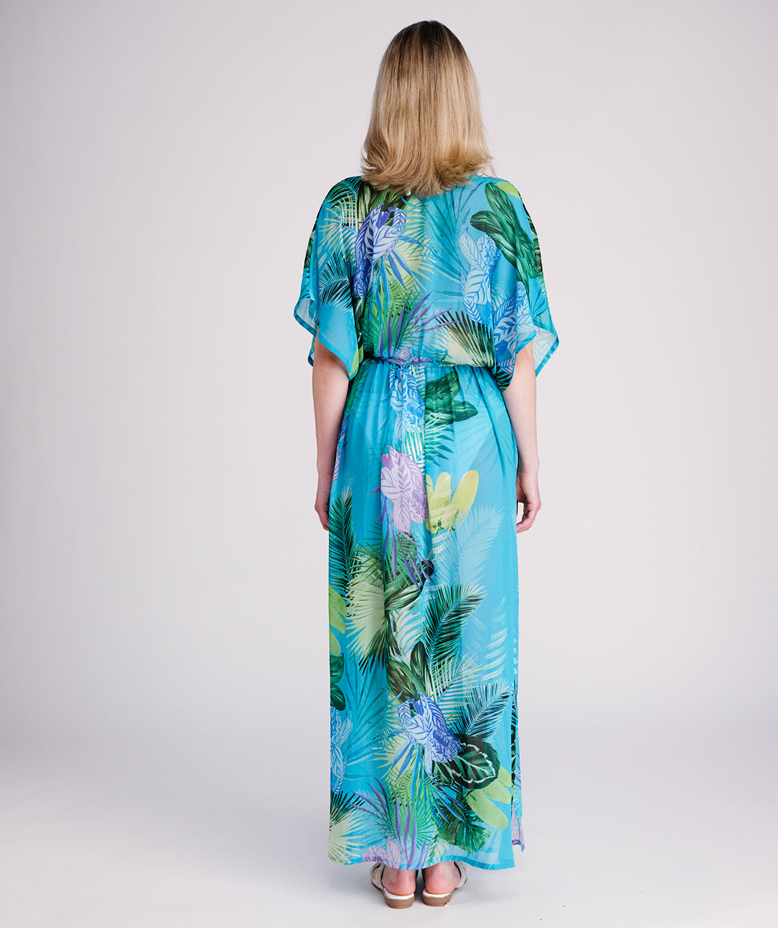 Marbella - Turquoise Tropical Print Maxi Kimono
