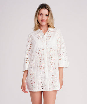 White Lace Beach Dress with Button Closures and Rope Waist Tie