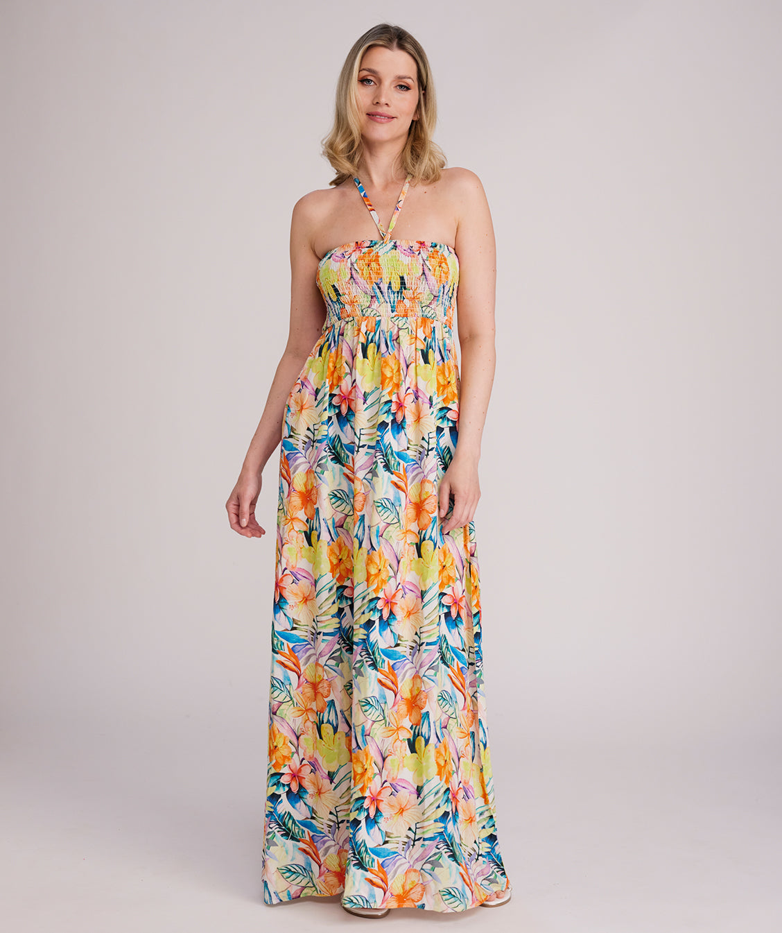 Caracas - Yellow Tropical Print Maxi Beach Dress