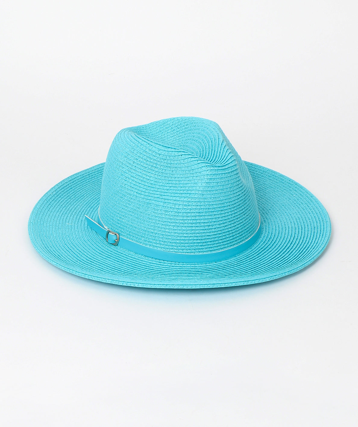 Step out in style and protect yourself from the sun with our Turquoise Solana Hat. This classic turquoise straw fedora is made from tightly woven straw, offering you excellent UVA sun protection. The hat also features a smart matching belt headband and a traditional fedora pinch in the crown for added style and sophistication. Stay chic and sun-safe with this must-have accessory.