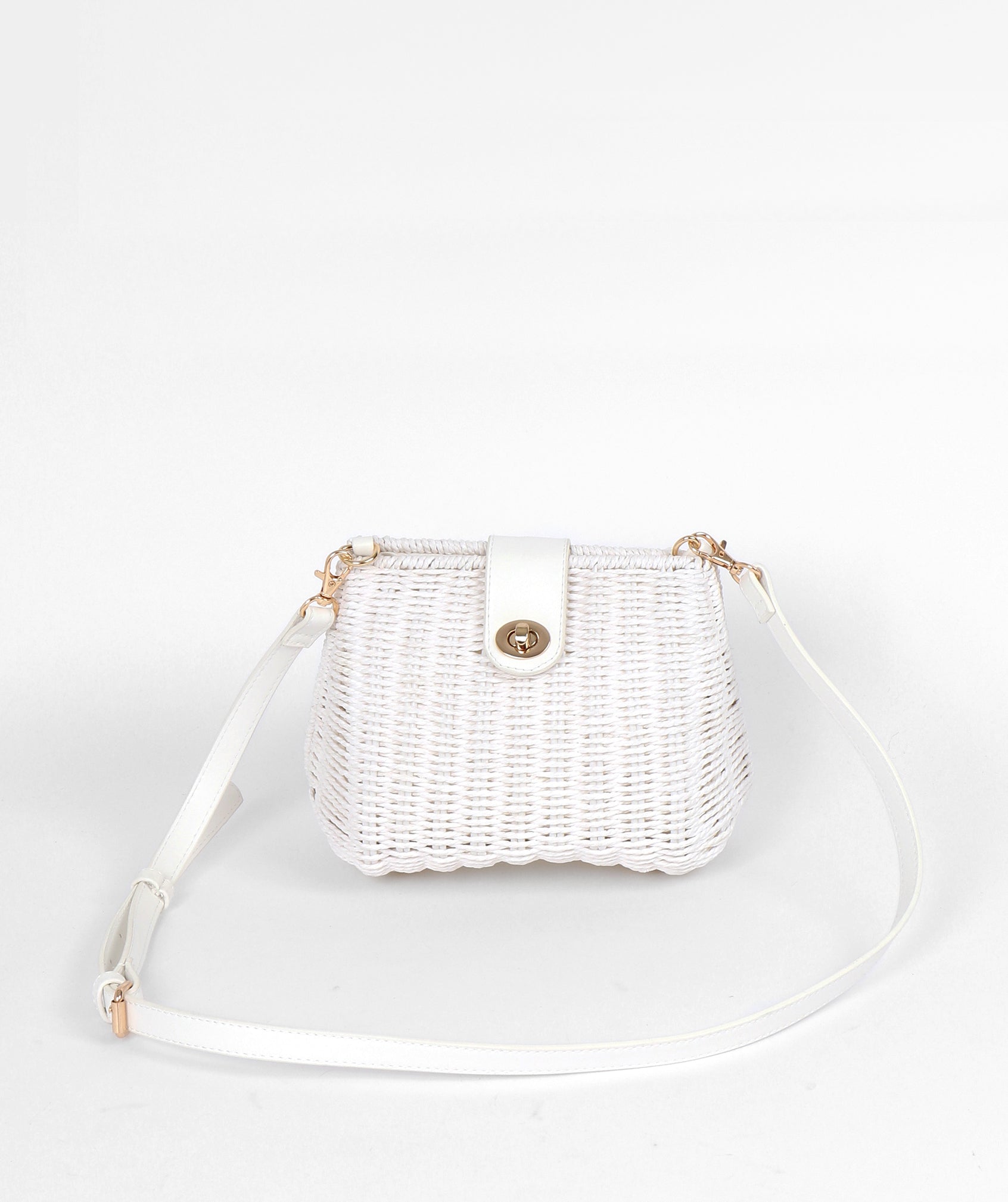 Elevate your look with the chic White Tia Bag from Pia Rossini. This Rattan Crossbody Bag features a stylish Gold Top Clasp and Long PU Strap, perfect for on-the-go essentials. Stay organized with its Interior Pockets and Fully Lined design. #Summer Accessories