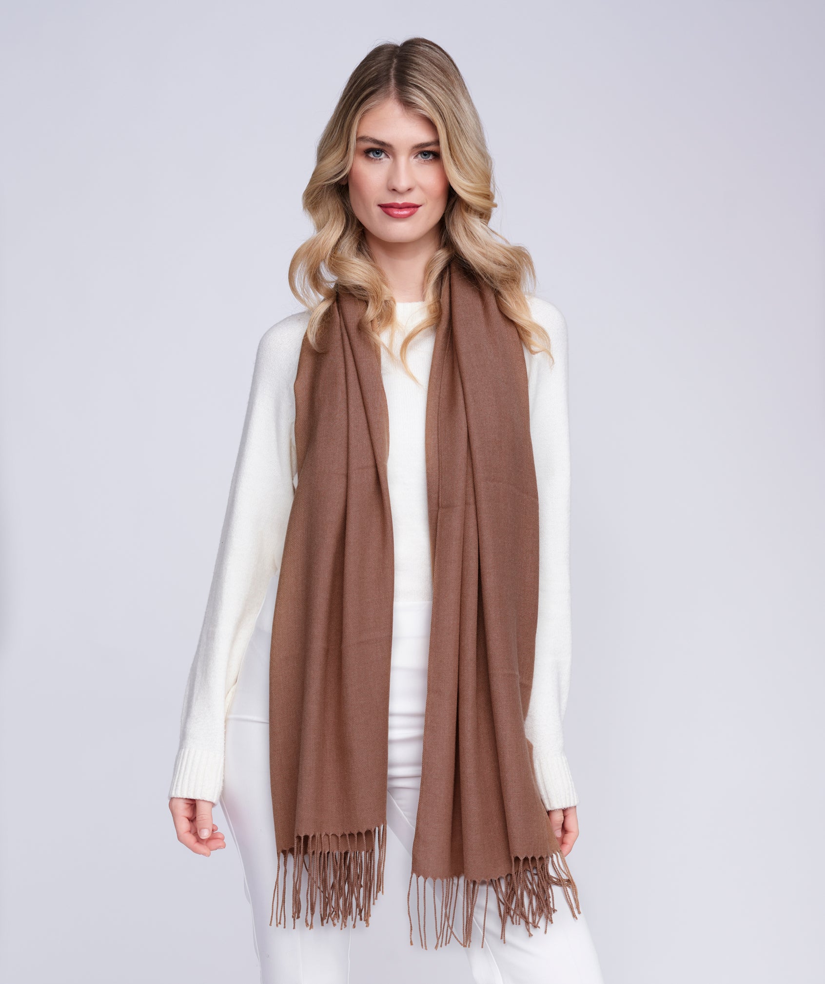 Pia – Brauner italienischer Pashmina mit gedrehten Fransen