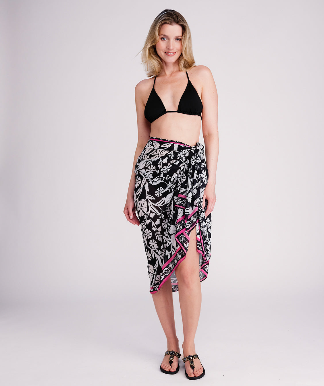Mykonos – Monochromer Strand-Sarong mit Blumendruck