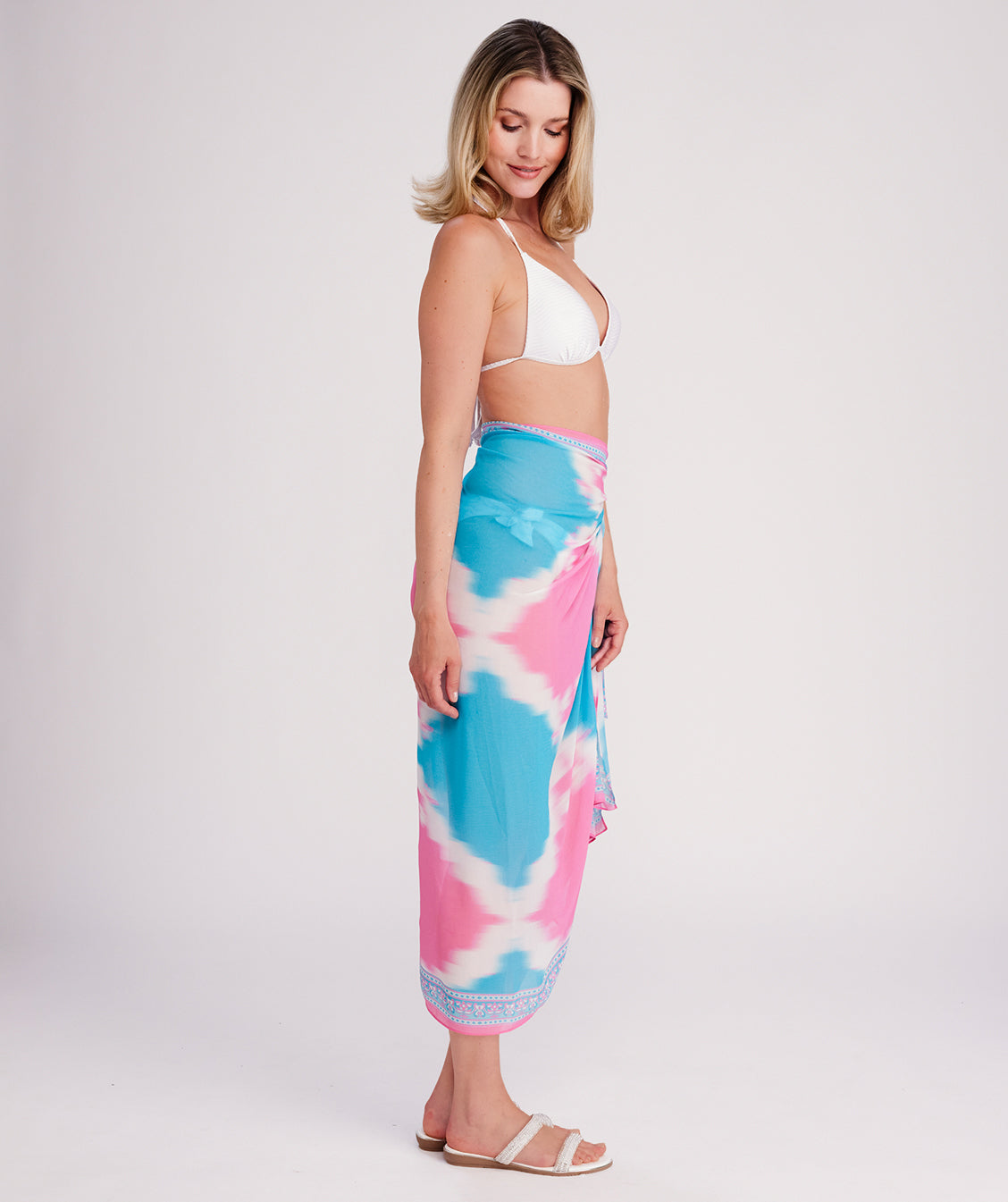 The Miami Turquoise Pink Diamond Beach Sarong is a vibrant and versatile summer essential.