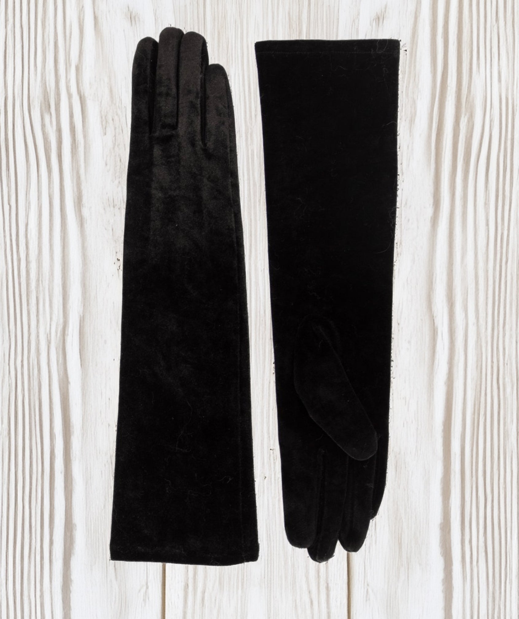 Victoria - Gants de soirée en velours noir de longueur de coude