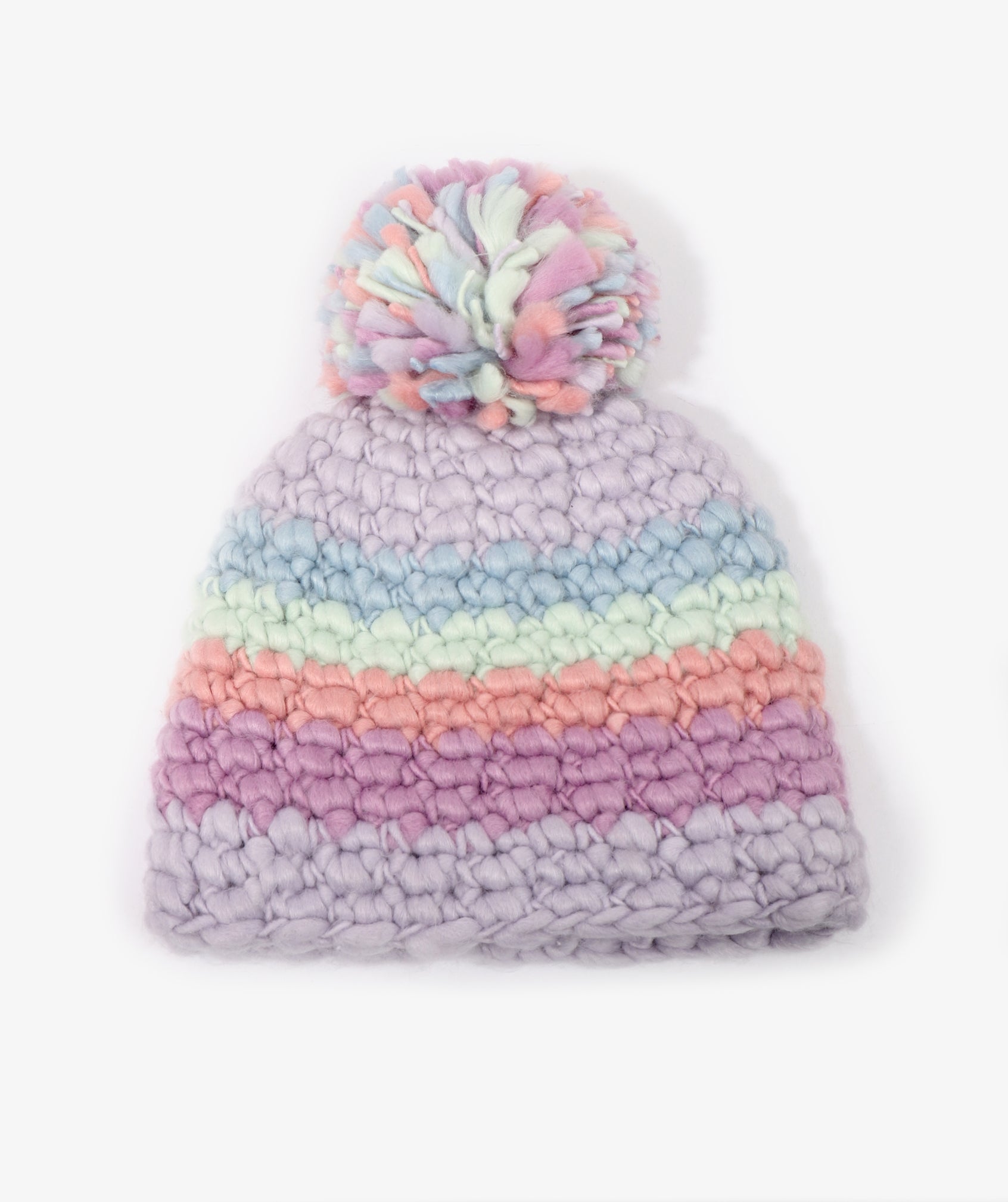 Questo pallido Il cappello con fodera in pile multicolore e pompon è un pezzo forte della nostra ultima collezione. Di sicuro rallegrerà anche le giornate più uggiose. E la calda fodera in pile è la ciliegina sulla torta!