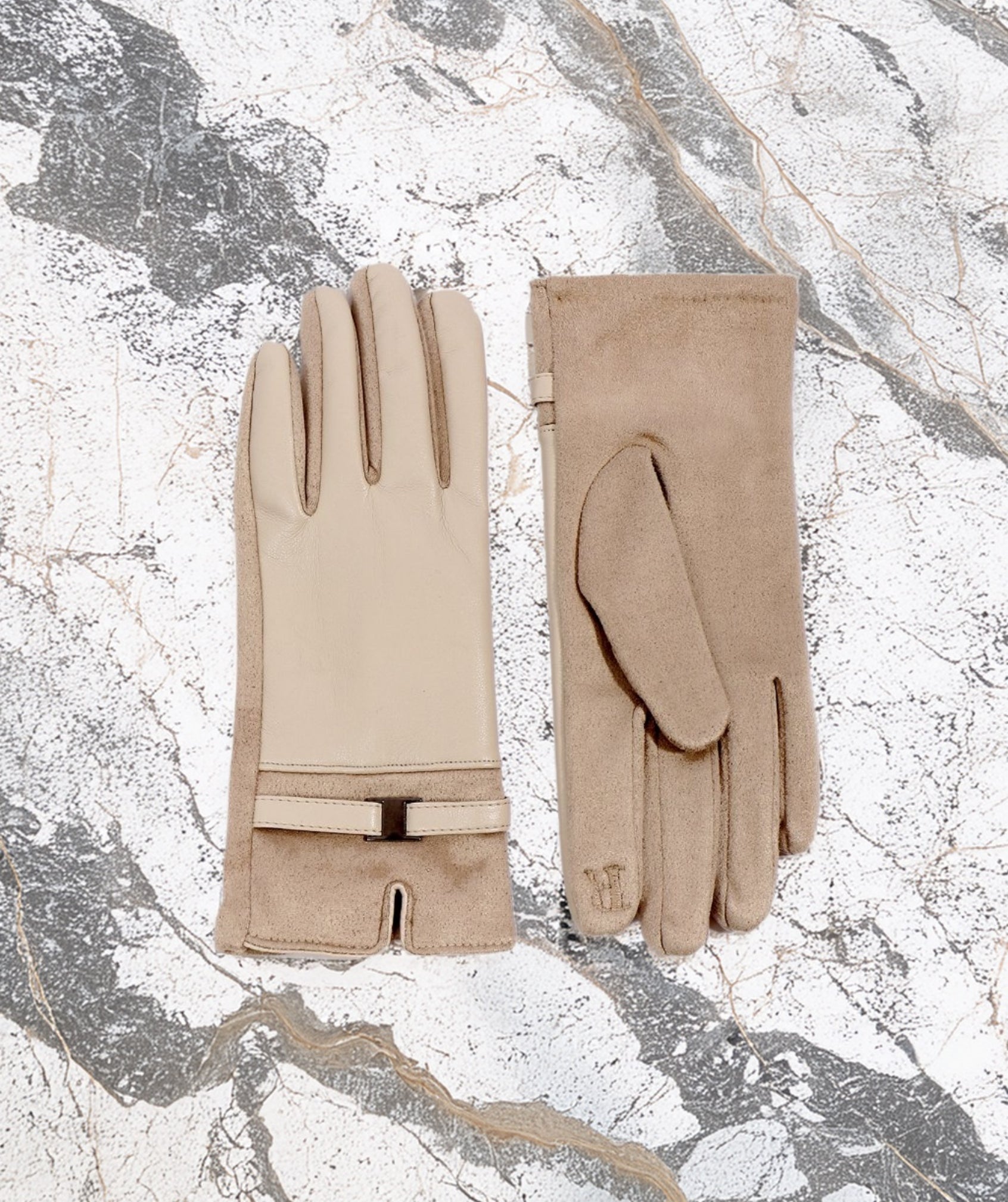 Marnie - Cream Faux suede handschoenen met faux bontafwerking
