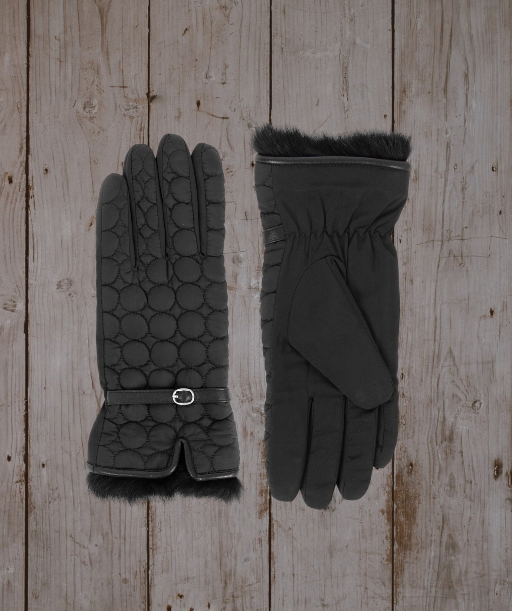 Alden - Luvas de pele falsa preta acolchoada