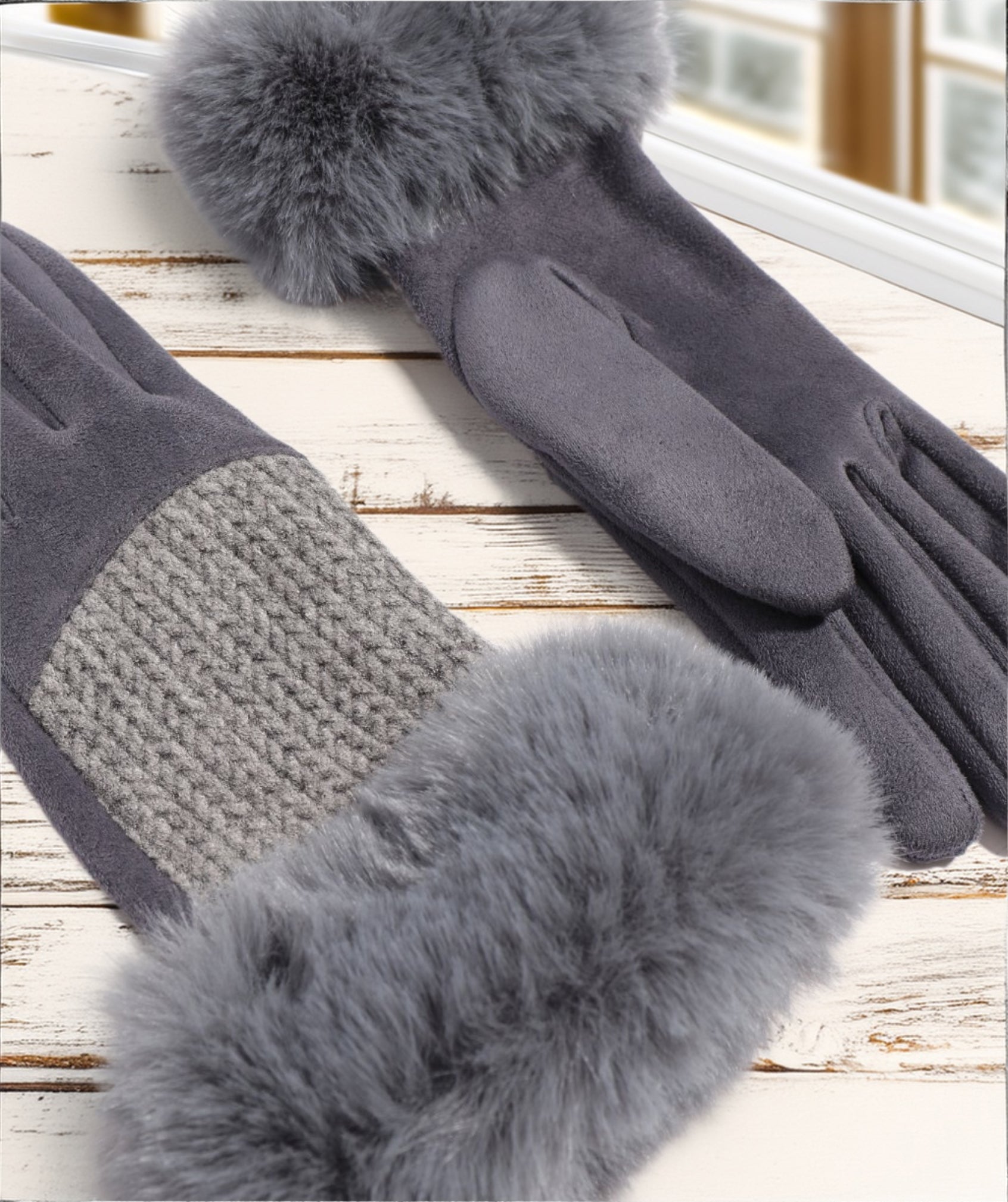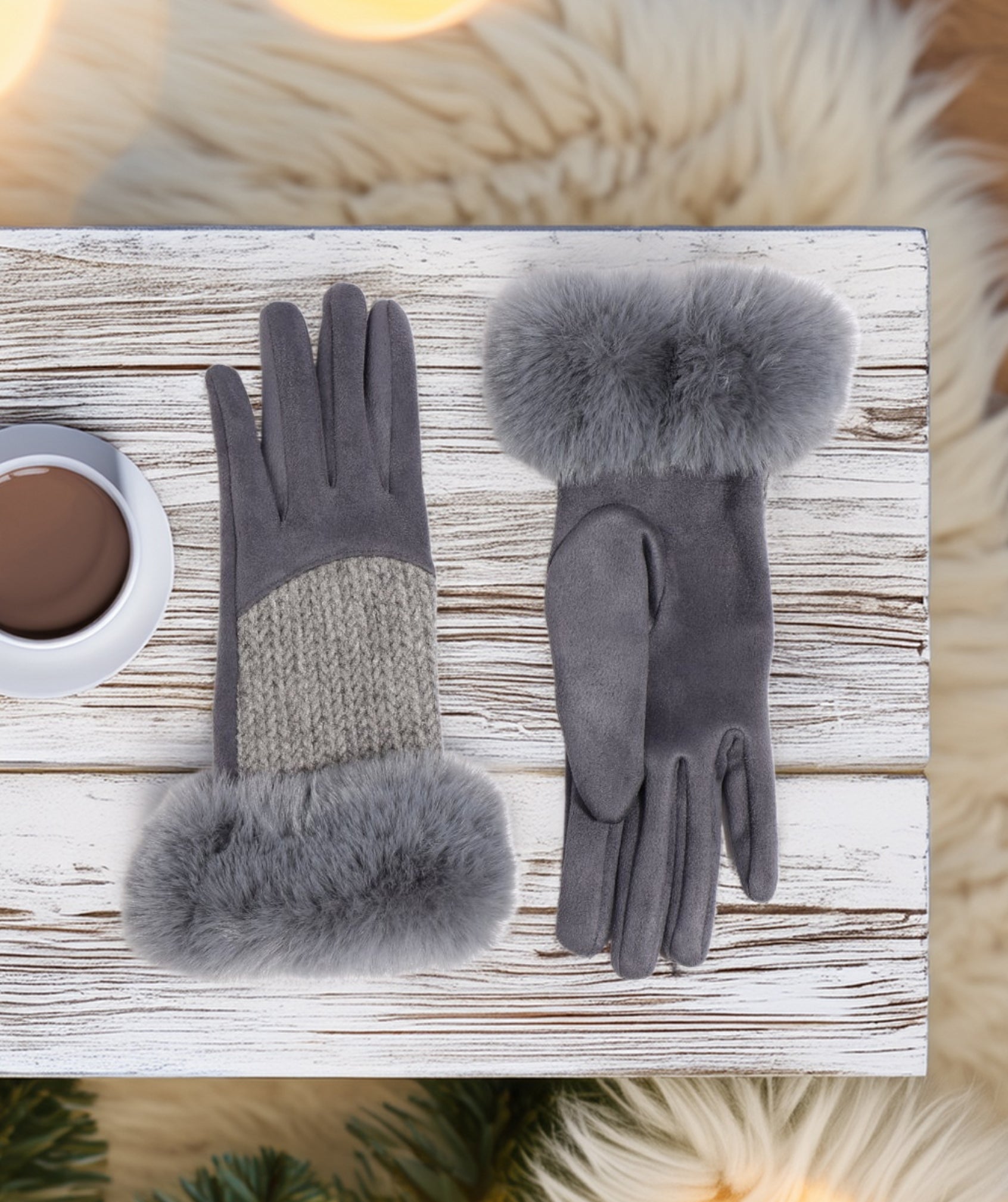 Aria - luva de malha de cabo cinza prateado com manguito de pele falso