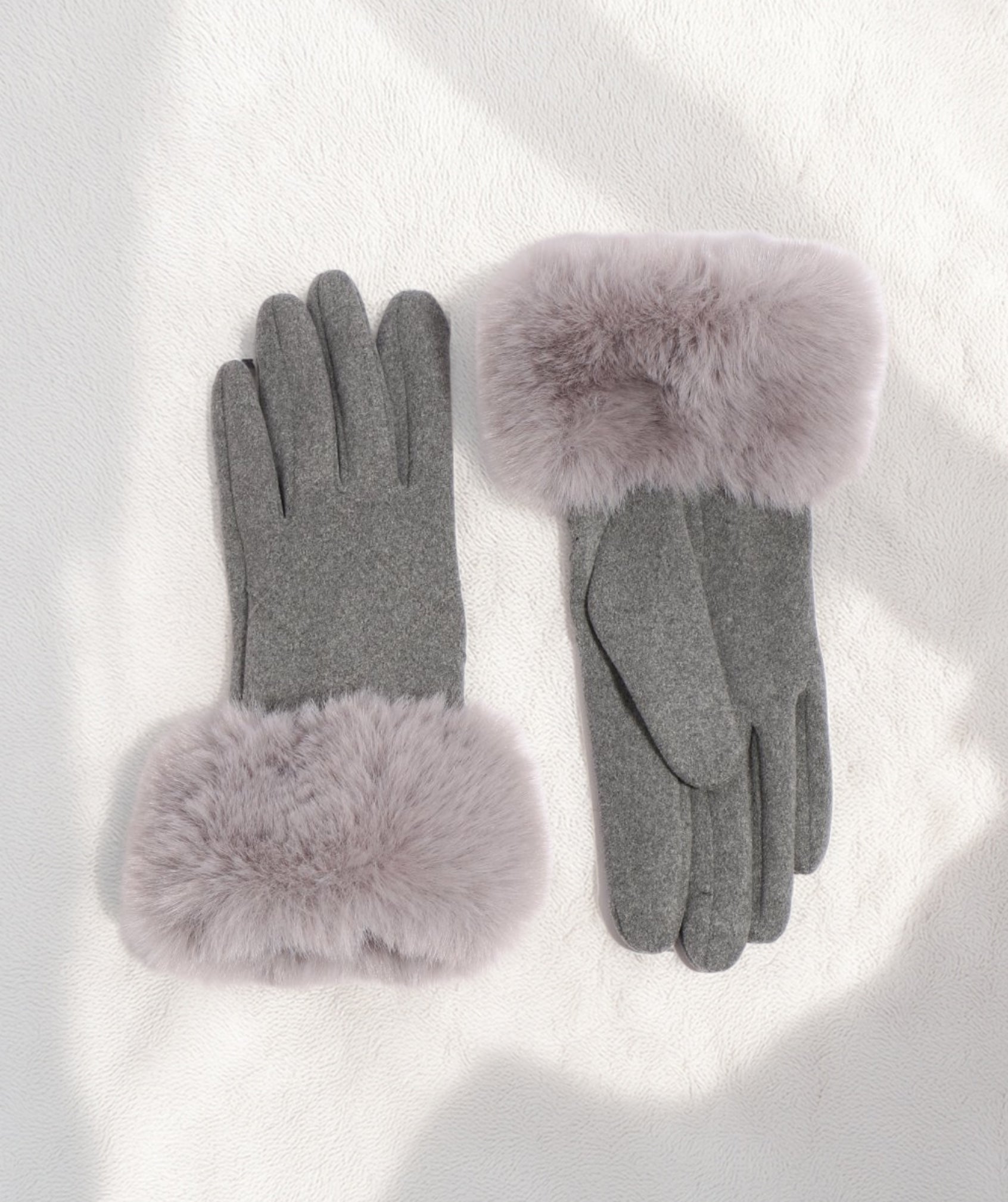 Fé - luva de lã cinza com manguito de pele falso