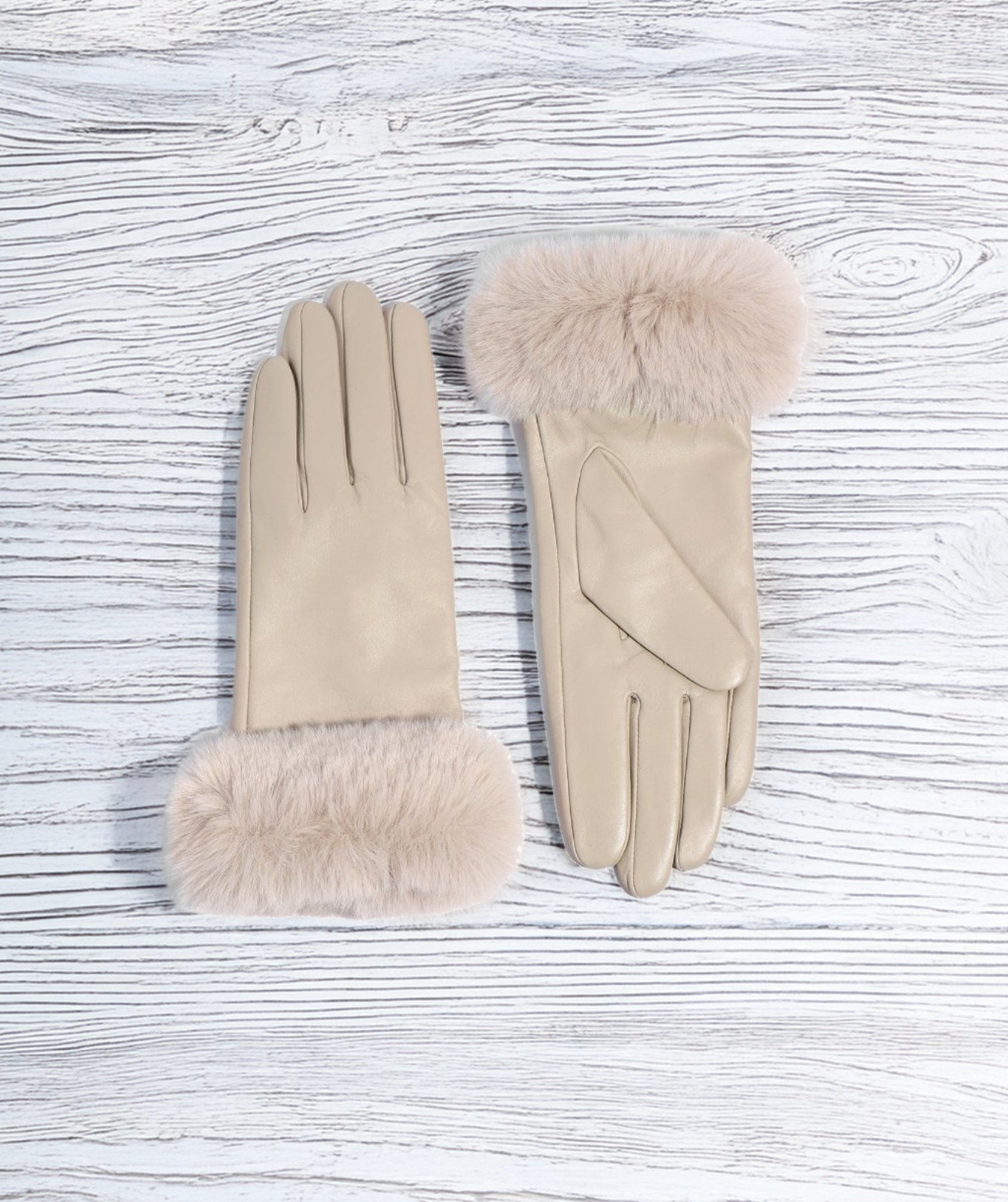 Roma - luvas de couro forradas bege com manguito de pele falso